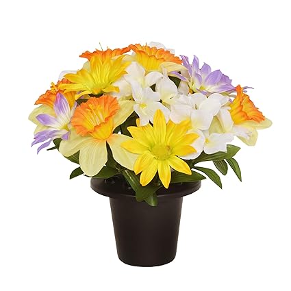 Artificial Flowers For Gravesites / Artificial Silk Flower Grave Pot Arrangement Flat Back Rose Lily Purple Daisy Ebay : We specialize in the design, production, and packaging of a wide variety of artificial flowers.